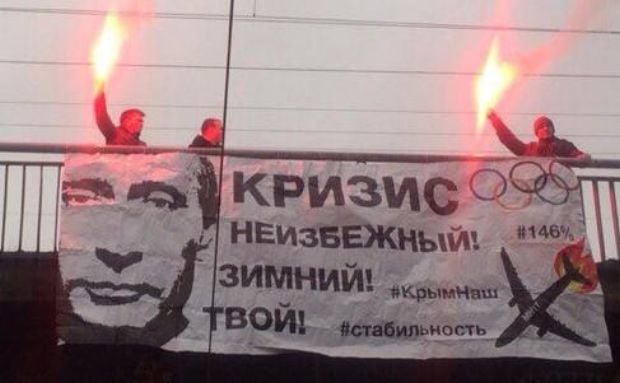 В Москве и Санкт-Петербурге прошли антипутинские акции: активисты развернули баннеры с обращением к президенту РФ Владимиру Путину по поводу кризиса в России. В Петербурге во время акции зажгли фаеры.