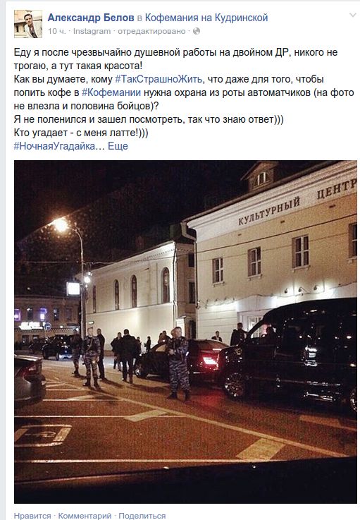 По его словам, он увидел возле кофейни бойцов и заинтересовался, кому же принадлежит такая серьезная охрана.
