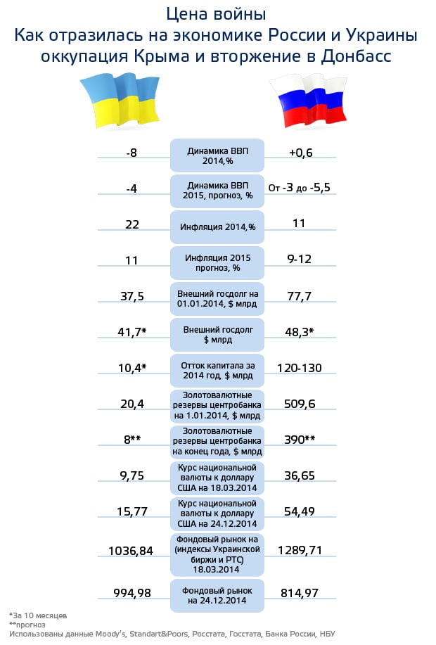 Мало кто из россиян в начале 2014-го мог представить, что 2015-й они встретят с долларом по 60 рублей, а Центробанк будет выражать надежду, что падение ВВП не превысит 5%. Что пошло не так? Аннексию Крыма и дополнительные миллиардные расходы на содержание "новых" граждан экономика России пережила почти без проблем. Последовавшие две волны санкций также не оказали эффекта. Третий этап, когда ЕС и США ввели против России секторальные санкции, уже вызвал легкое беспокойство у российского бизнеса: многие лишились доступа к западным деньгам.
