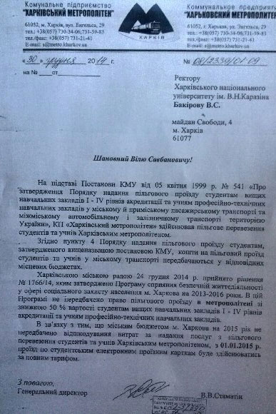 Соответствующие документы уже опубликованы в соцсетех. В них сказано, что в программе содействия безопасной жизнедятельности в сфере социальной защиты населения Харькова не предусмотрено право на льготный проезд в метро для студентов вузов I - IV уровней аккредитации и учащихся ПТУ. В горбюджет на 2015-й год средства на оплату 50%-й льготы на проезд в метро также не заложены. В связи с этим проезд студентов с использованием электронной студенческой карты будет оплачиваться по полному тарифу.