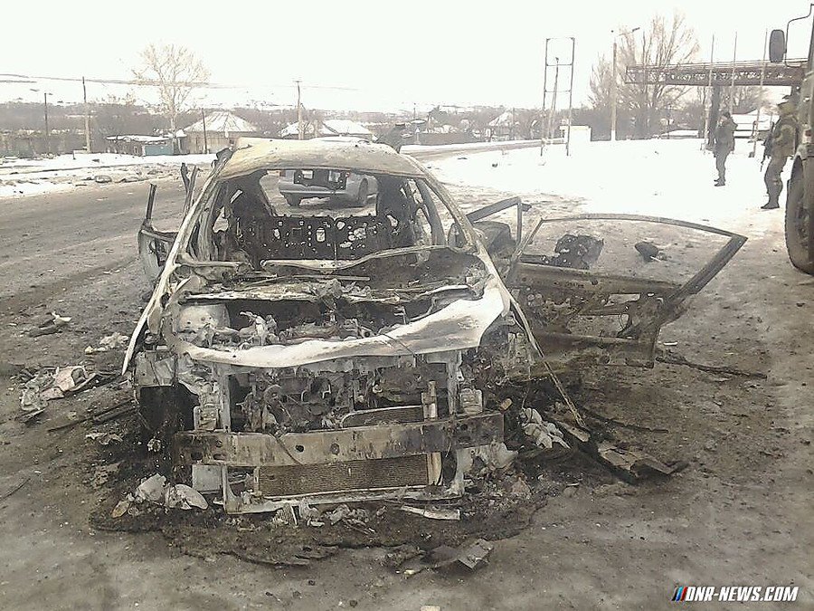 В сети появились фотографии с места событий, где был уничтожен известный главарь боевиков начальник штаба четвертой бригады террористической «ЛНР» Александр Беднов («Бэтмена»).