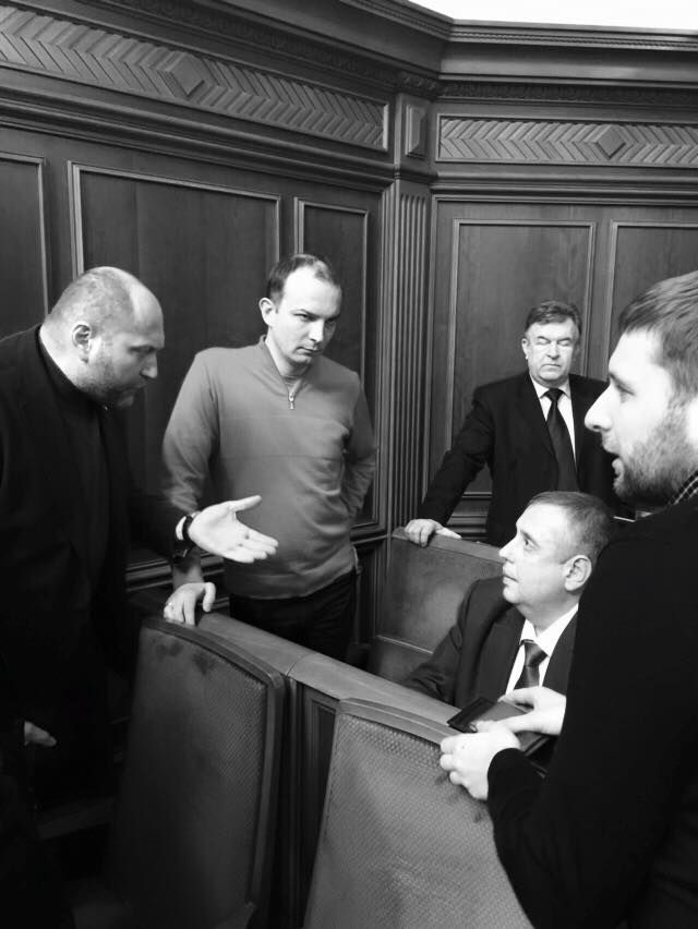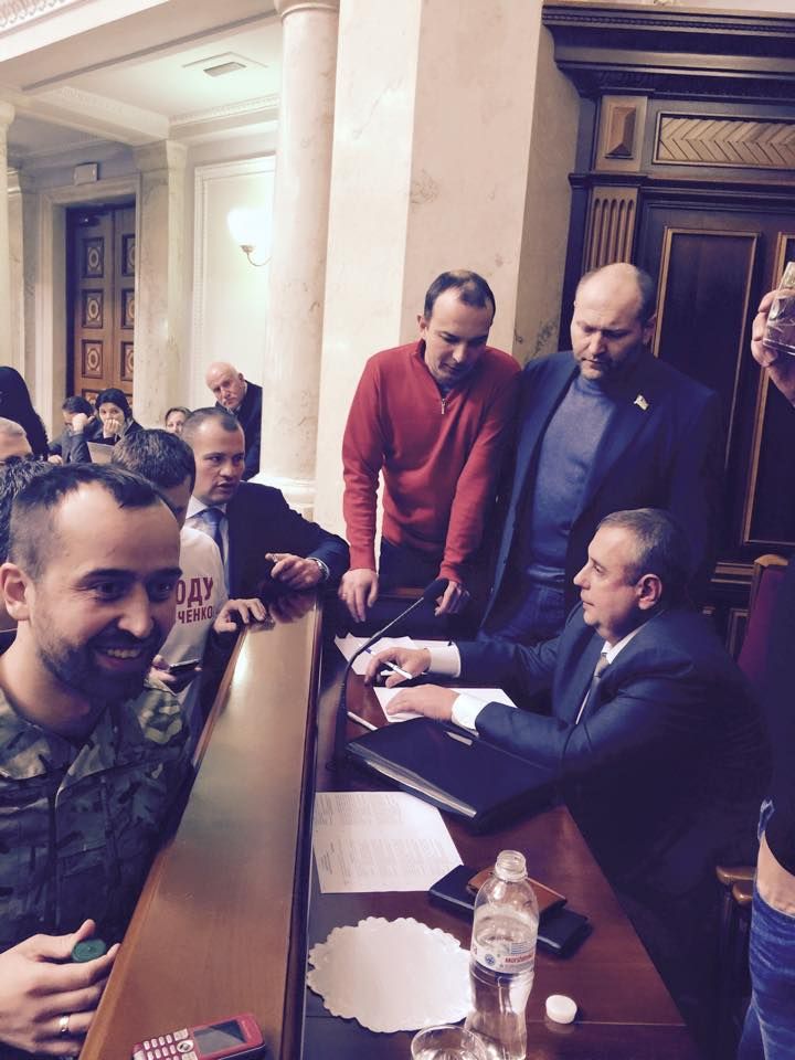 После "разговора" с депутатами Исаенко написал заявление "добровольно". На фото, опубликованными в Сети, видно, что с Исаенко разговаривали депутат от "Самопомочи" Егор Соболев, внефракционный Борислав Береза и другие.
