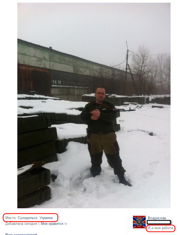 "Бравый ополченец с удовольствием позирует на фоне боеприпасов и множества ящиков, намекая, что все, что изображено на фотографиях это лишь малая доля того, что есть на складах и в ангарах", - заявил он.
