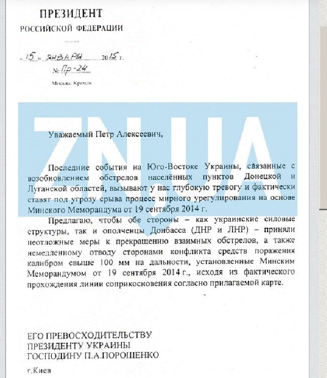 Копию письма главы РФ опубликовало ZN.UA в материале "Топография кровью".