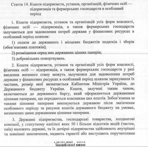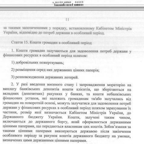 Напомним, законопроектом «О финансовой системе Украины в особый период» предусмавтривалось привлечение средств клиентов, хранящихся на депозитных счетах для нужд государства. Размер должен был определяться Кабмином согласно Государственному бюджету.