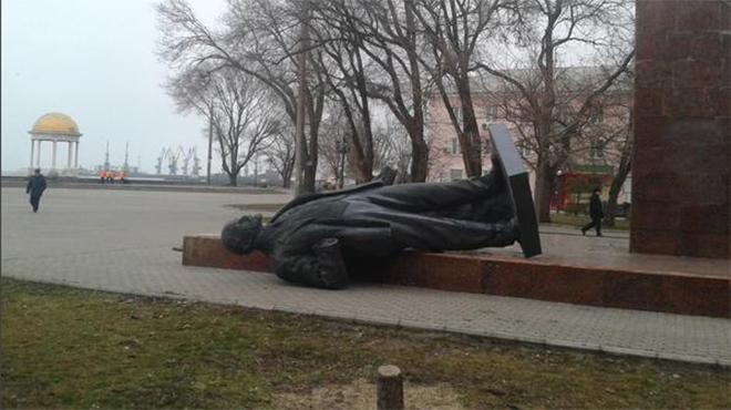 В Бердянске сегодня утром на Приморской площади неизвестные в камуфляжах снесли памятник Ленину. Об этом сообщил директор департамента культуры, туризма, национальностей и религий Запорожской областной государственной администрации Владислав Мороко, передает корреспондент РБК-Украина.