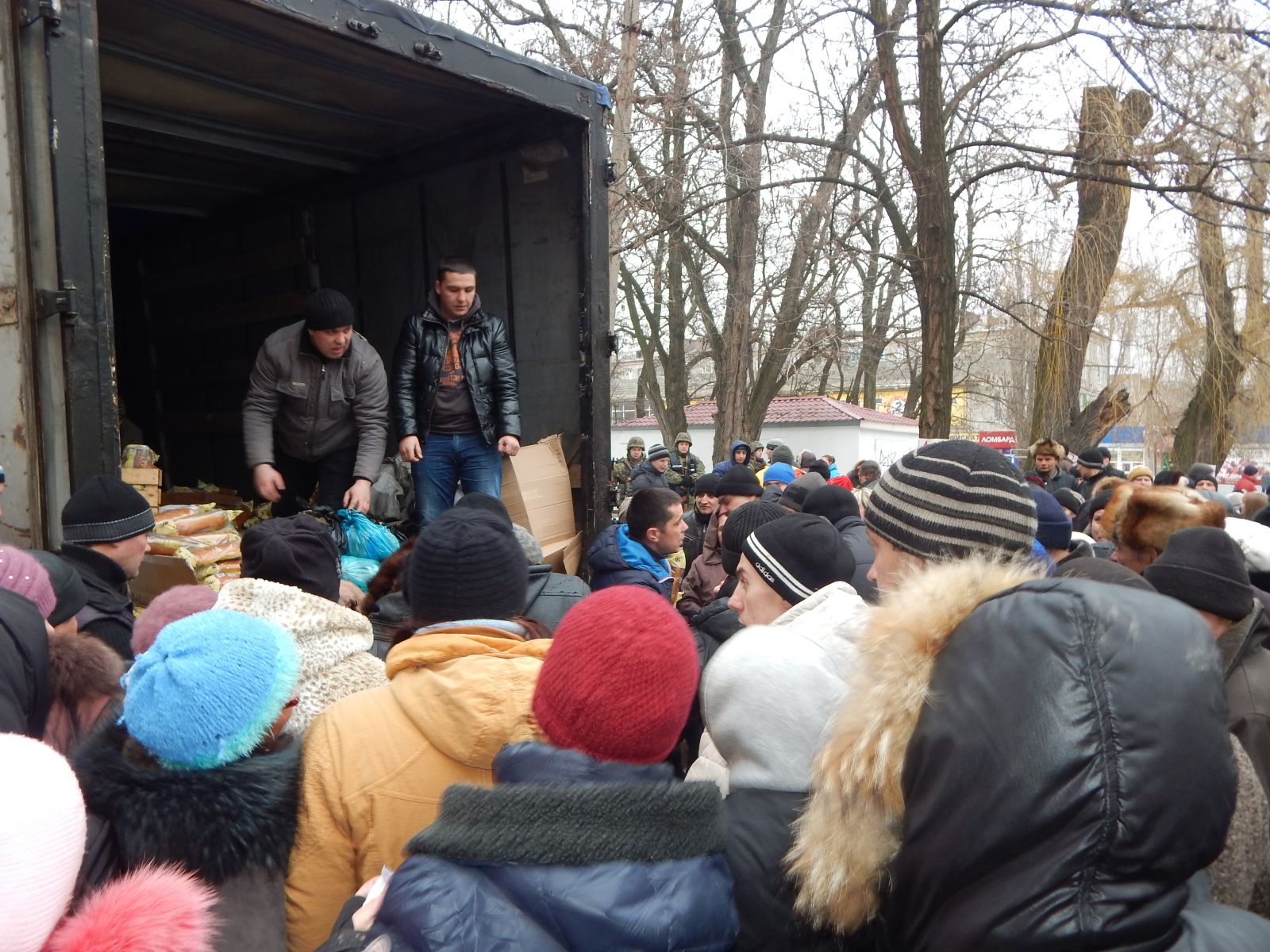 Как сообщают в волонтерском центре «Новое поколение», жителям Авдеевки - город находится в нескольких километрах от донецкого аэропорта - раздали больше тысячи продуктовых пакетов с хлебом, крупами, макаронами, картофелем, сахаром и консервами. Кроме того, волонтеры привезли около тонны теплой одежды.