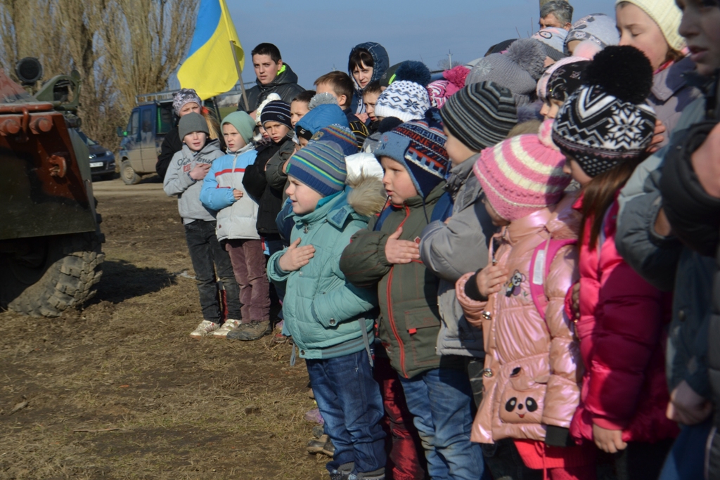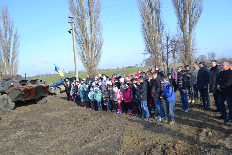 На освящение бронетехники пришли местные жители и школьники. Дети, к слову, подготовили солдатам письма и рисунки, чтобы те согревали души и сердца защитников Украины.