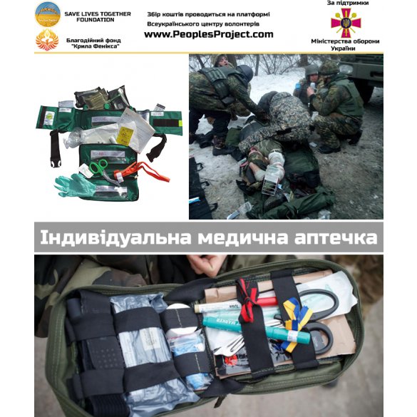 Кроме того, он отметил, что группа "Крылья Феникса", вместе с группой Save Lives Together, вместе с Министерством обороны Украины запустили совместный проект по комплектации аптечек: "Крылья Феникса (координатор Диана Петреня) - шьют все аптечные подсумки. Save Lives Together (координатор Дана Яровая) - собирает деньги и закупает кровоостанавливающие препараты и оклюзивные пленки. Министерство обороны (координатор Всевлод Стеблюк) - закупает все остальное. Народный проект (координатор Давид Браун) - предоставил платформу доя работы".
