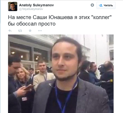 Около часа назад в твиттере Сулейманова - руководителя Юнашева - появилась запись следующего содержания:
