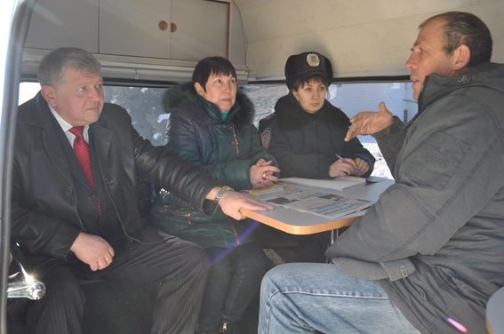 Прием граждан на центральной площади в городе Дергачи провели советник начальника ГУМВД Украины в Харьковской области Александр Сирота, помощник начальника областного ГУМВД Валентина Виштейн и начальник Дергачевского райотдела полковник милиции Константин Калашник.