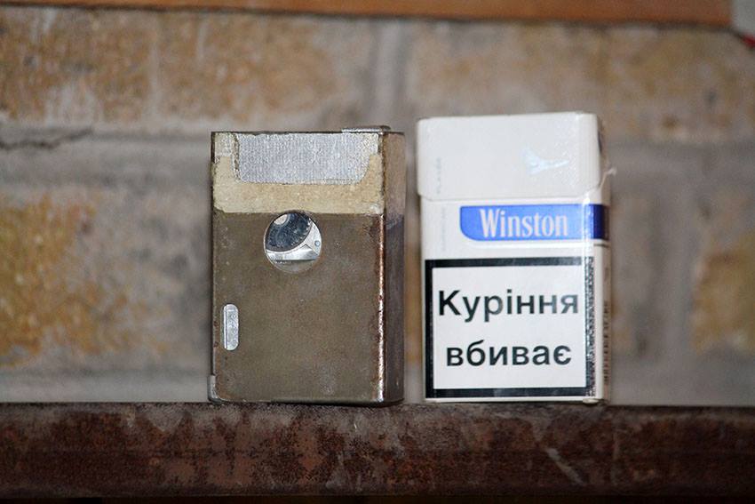 Военнослужащие 93 отдельной механизированной бригады в одном из домов в населенном пункте Тоненькое нашли мини-фотокамеру, замаскированную под стандартную пачку сигарет.