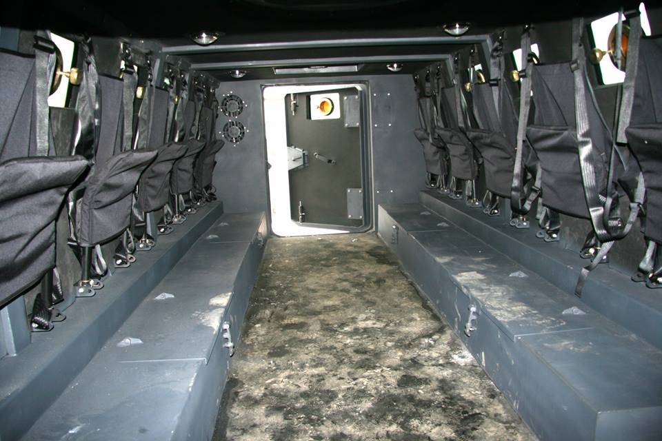 Конструкція корпусу - днище корпусу V-подібне, розсіює силу удару від вибуху, направлену на пасажирів.