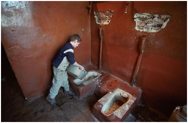 И ладно картина с мальцом, хотя тюрьмы-тюрьмой да и только, но вот туалет без сливных бочков, окрашенный так, будто время отмотали на 30 лет назад.