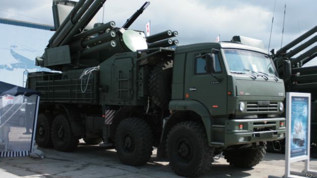 Снимки озаглавлены "Как опознать российский "Панцирь-С1" (он же SA-22), который не состоит на вооружении украинских войск", сообщает Русская служба ВВС.