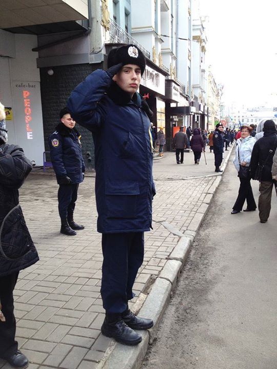 "Курсант Харьковского Университета внутренних дел Павлюченко Павел Владимирович. Вчерашнее фото из Харькова. Курсант отдает честь шествию в честь героев Небесной сотни. Вы спрашиваете, какая будет новая украинская милиция? – вот какая! Из этих ребят, из настоящих!" - написал глава МВД.