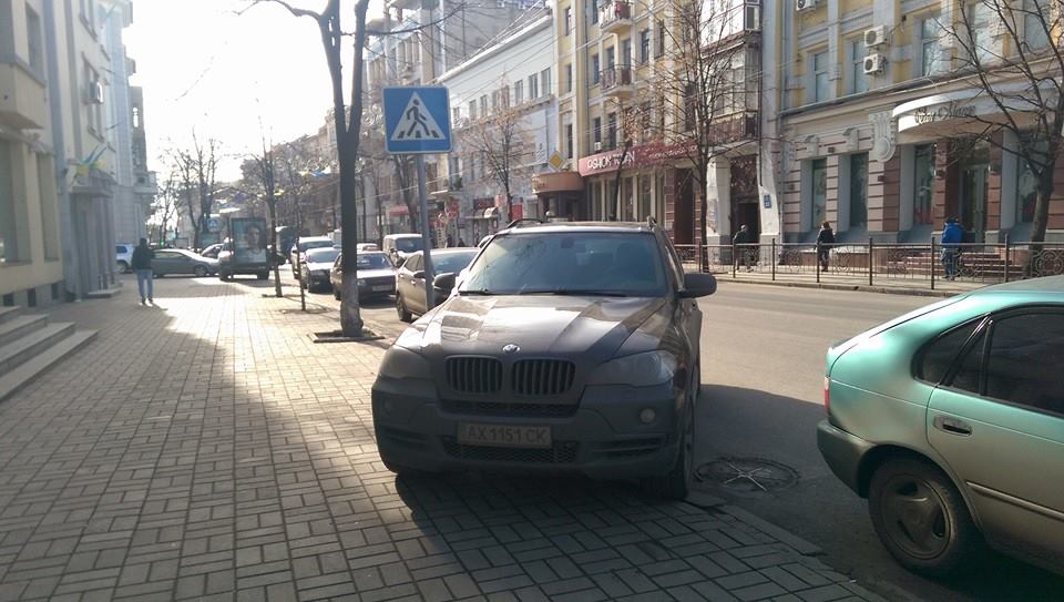 Харьков, 26 февраля 2015 года. Центральная улица города - Сумская. Водитель "задрыпанного, бедненького" автомобиля с государственным номером АХ 1151 СК перекрывает пешеходный переход - ему так удобно. Хочется верить, что штраф, оформленный сотрудниками ГАИ будет под стать "бедности" автомобиля.