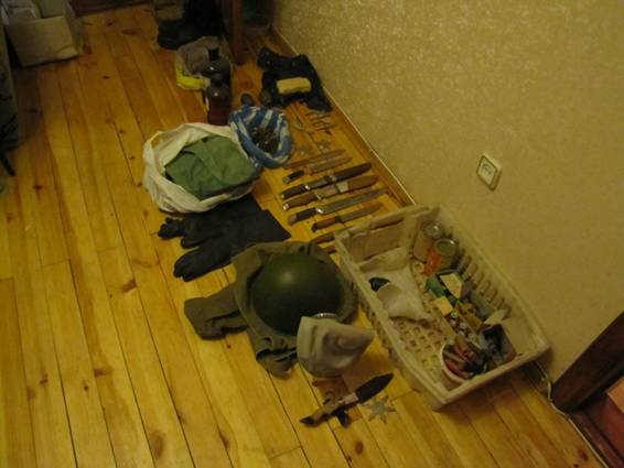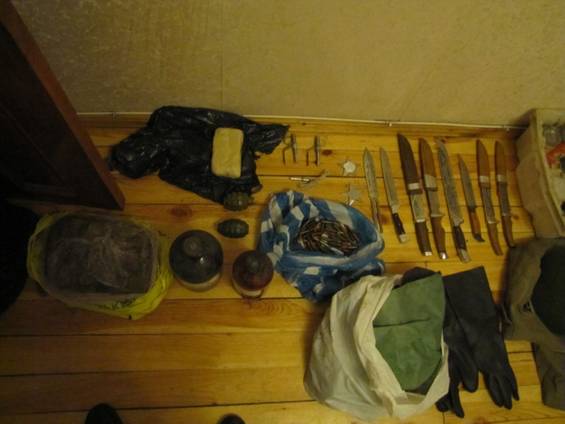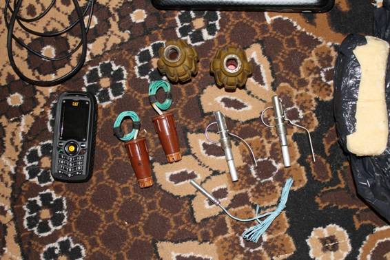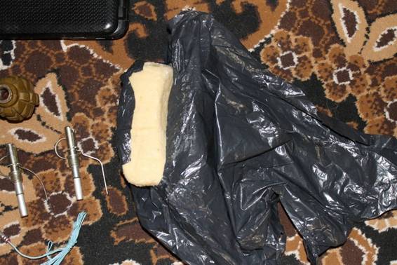 Во время обысков в помещениях террористов сотрудники СБУ изъяли гранаты Ф-1, пластид, детонаторы, патроны к автоматическому оружию.