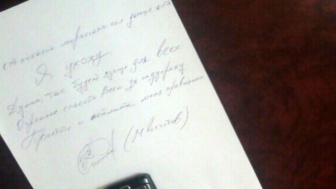 Перед смертью Чечетов оставил записку. В распоряжении корреспондента ТСН Ольги Василевской оказалось фото этой записки. Там, в частности, написано: "Я ухожу. Думаю, так будет лучше для всех. Огромное спасибо всем за поддержку. Простите и поймите меня правильно. М. Чечетов".