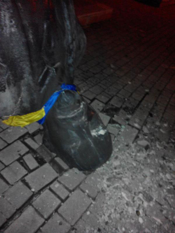Памятник Ленину в Доброполье был снесен с постамента неизвестными в ночь с 10 на 11 марта. Монумент зацепили и свалили с помощью троса, привязанного к грузовику.