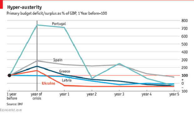 Во-первых, МВФ ожидает увидеть, что случится с дефицитом бюджета Украины. Он ожидает, что «исходный» дефицит бюджета (за вычетом процентных платежей) полностью исчезнет в следующем году, «в результате чего задолженность начнет неуклонно сокращаться». Разве они многого требуют?
