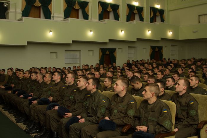«Цього року у вас достроковий випуск. Він відбудеться на три місяці раніше ніж завжди. Сьогодні такі заходи необхідні, адже зараз у нас в країні іде мобілізація. Незабаром до військ прийдуть і солдати призвані на строкову службу. Це будуть ваші безпосередні підлеглі і ви повинні почати з ними працювати з перших днів служби. Навчити їх, поспілкуватися з кожним, завоювати авторитет і тоді ви станете справжнім підрозділом, готовим до виконання завдань», - звернувся до випускників генерал-лейтенант Микола Балан.