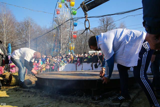 Интернет-пользователи обратили внимание на фоторепортаж издания «Юга.ру», который был опубликован почти месяцем ранее — 23 февраля. На фотографиях празднования Масленицы в Ставрополе, кроме прочего, показан процесс изготовления гигантского блина.