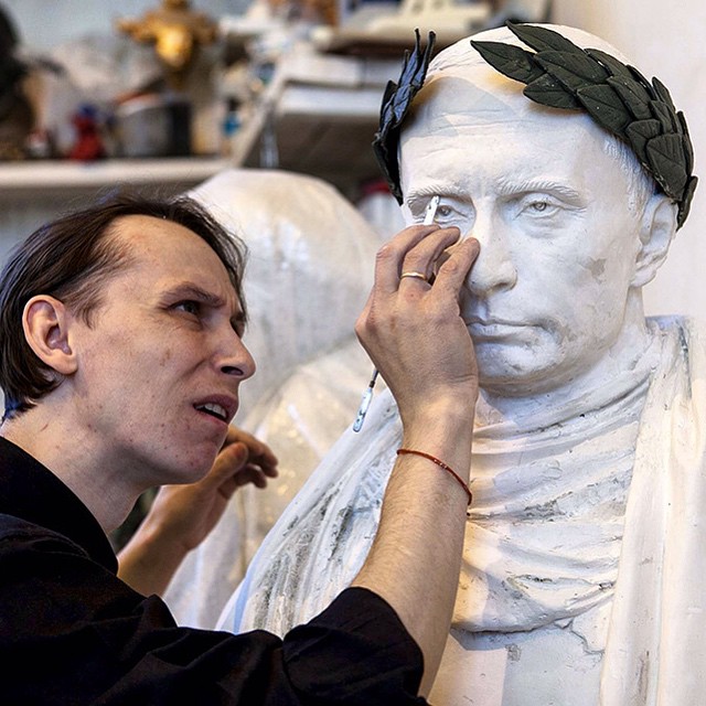 Скульптура будет изображать Путина в образе римского императора. Работу над ней заканчивает скульптор Павел Грешников.