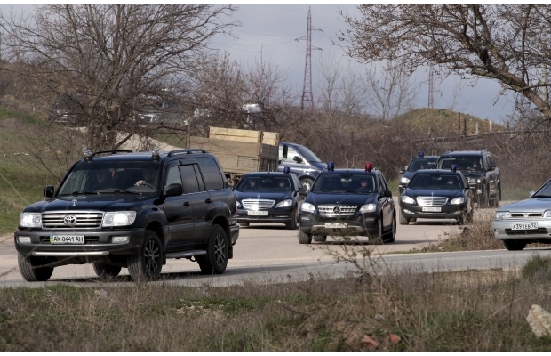 На одной из фотографий зафиксирован похоронный кортеж. Он состоит из черных VIP-автомобилей Mercedes и Toyota - четырех внедорожников и двух седанов. Один из автомобилей имеет украинские номерные знаки, другие - российские с кодами Крыма и Севастополя.