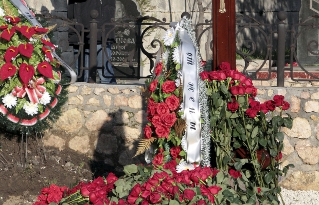 Еще более удивительным является то, что венки на могиле также не содержат никакой информации. На лентах, которые помещены между цветами, нет имен, только очень общие определения типа "от жены".