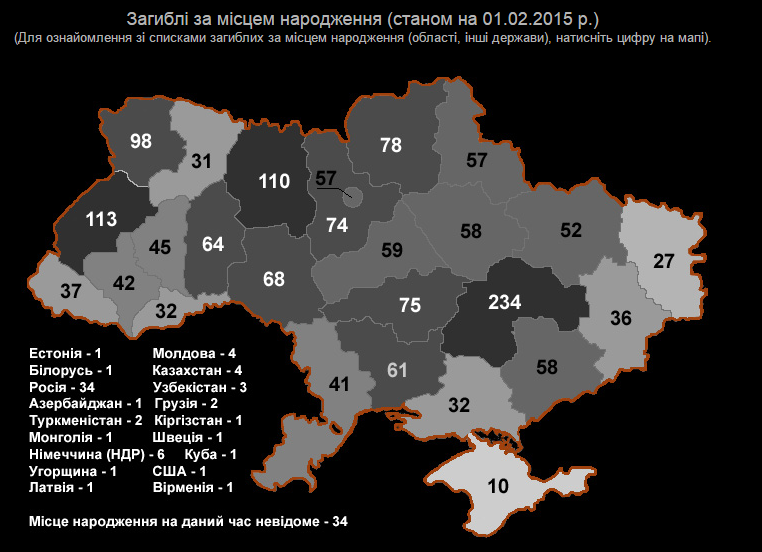 Сотрудники Национального военно-исторического музея Украины составили онлайн-базу, в которой собраны наиболее свежие сводные данные о потерях военных и добровольцев на Донбассе.