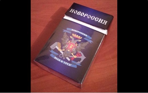 На оккупированных пророссийскими боевиками территориях Востока Украины появились сигареты «Новороссия». Пачка выполнена без стандартных требований продажи табачных изделий. На упаковке отсутствует надпись о вреде курения и нет акцизной марки. Производитель сигарет неизвестен.