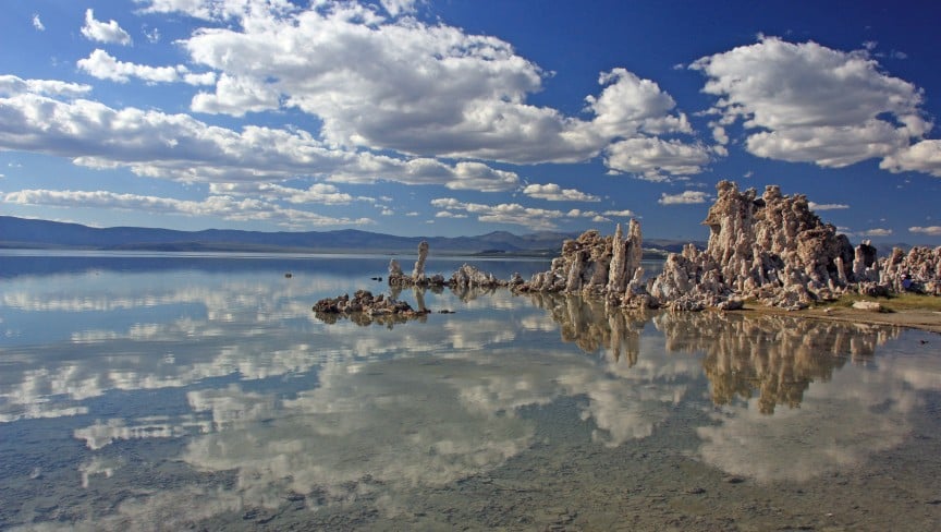 Моно было замечательным соленым озером со своей уникальной экосистемой, пока его не изгадили люди. Город Лос-Анджелес истощил его притоки, вследствие чего озеро начало пересыхать. Такая ситуация длилась 50 лет, и когда кинулись, половина объема озера уже ушла. Сейчас, несмотря на внешнюю привлекательность, это токсичное озеро, соленость которого в два раза превышает океаническую. Американцы хотят восстановить его первозданное состояние, но на это уйдут десятилетия.