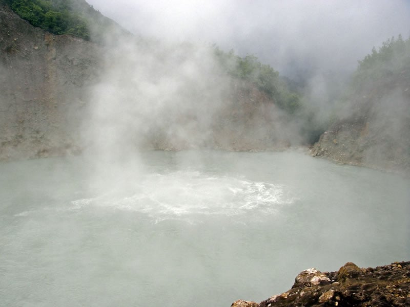 Температура воды в этом чуде природы варьирует в пределах 90 градусов Цельсия, хотя в период затяжных дождей может снижаться до 10. Но купаться в озере нельзя никогда, поскольку под водой бьют струи горячего воздуха и даже лавы.