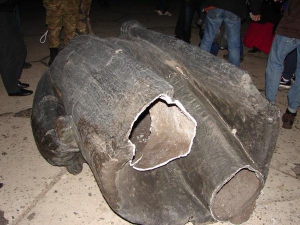 Уже в темноте около 15 активистов подъехали к ДК "Энергетик", где был установлен Ильич. Забрались на постамент, набросили на статую крепкий трос, прикрепили его к "УАЗику" и стащили фигуру вождя с пьедестала. При падении она разбилась, у статуи отлетели голова и руки.