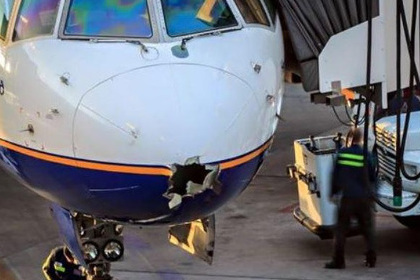 Молния пробила дыру в носу пассажирского авиалайнера, летевшего из Исландии в США.