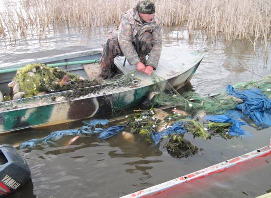 Работники милиции подняли утонувшую лодку, в которой обнаружили восемь рыболовных сетей и около 140 килограммов рыбы.