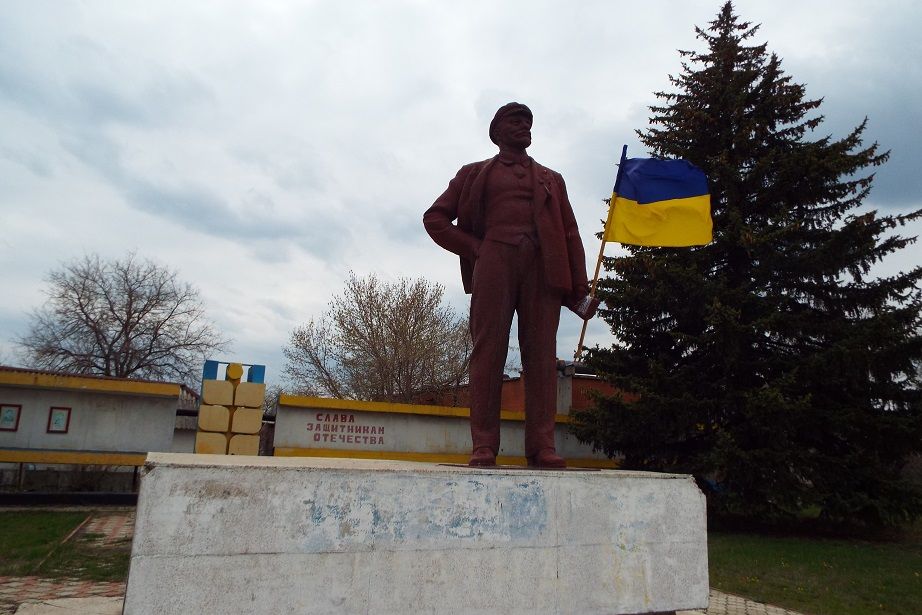 Памятник стоял у здания райгосадминистрации и оставался едва ли не единственным объектом в центральной части поселка, который не пострадал в результате боевых действий.