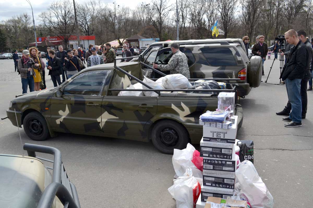 По словам координатора волонтерского движения "Центр помощи и поддержки военных" Ирины Голуб, во Львове для подразделений, находящихся в АТО, снарядили 9 автомобилей. Это внедорожники, автобусы и пикапы для разведвзводов. Три машины уехали прямо на Донбасс, а шесть – заехали в Харьков, чтобы принять участие в акции. Кроме автомобилей, военным передадут медикаменты, продовольствие и одежду. Кроме этого, одежду, собранную во Львове, будут в качестве благотворительности раздавать людям в зоне АТО.