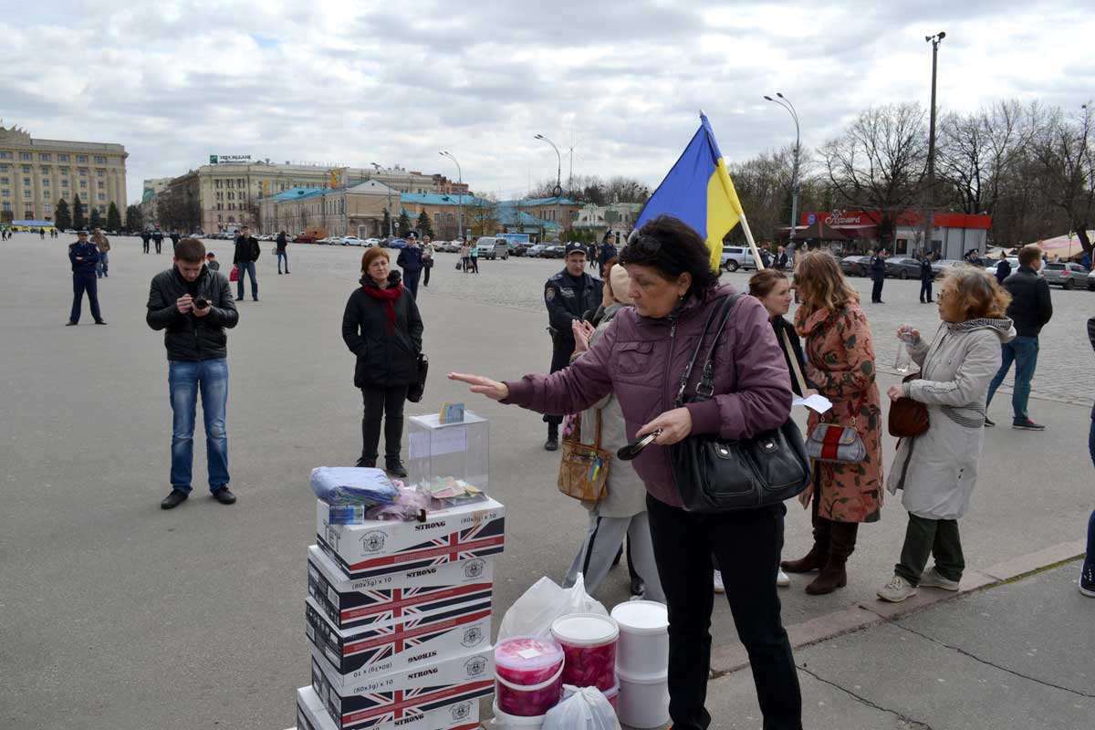 Сегодня, 17 апреля, на пл.Свободы в Харькове проходит акция в поддержку украинских военных. Возле постамента памятника Ленину выстроились внедорожники, часть которых отправится в АТО, часть – останется в Харькове в распоряжении "Східного корпусу". Кроме этого, жители города принесли паски, шоколадные батончики, чай и другие продукты, которые передадут военным. На площади также собирают средства на бензин для внедорожников, которые поедут в АТО.