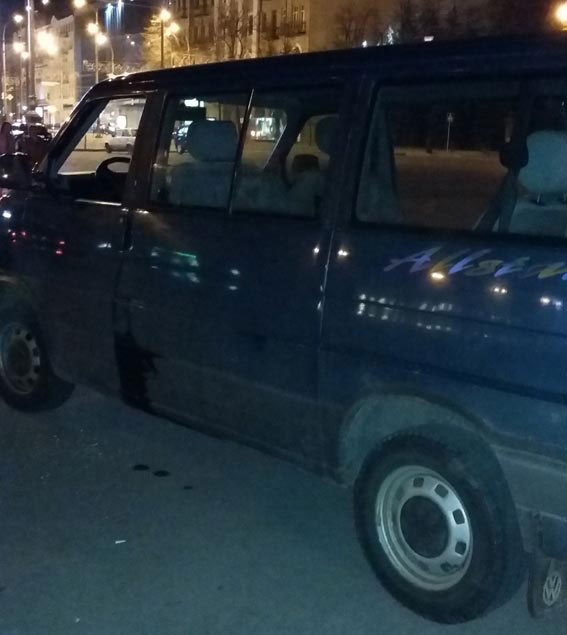 Микроавтобус активистов догнали возле палатки «Евромайдана» на площади Свободы, самих активистов задержали, но потом отпустили.