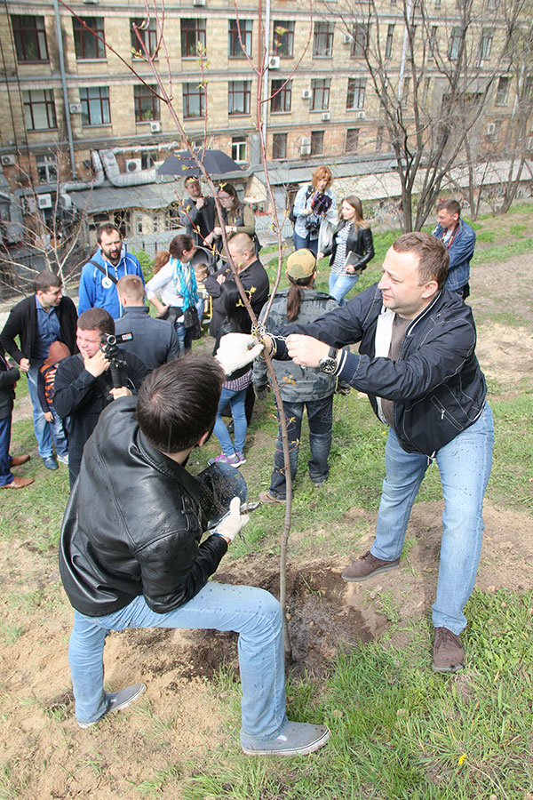 Сегодня акция “Дерево памяти” увековечила память бойцов из разных регионов Украины в центре Киева: 7 красных кленов посадили перед Октябрьским дворцом, 3 — возле памятника В. Лобановскому, 5 — на перекрестке ул. Грушевского и Петровской аллеи.