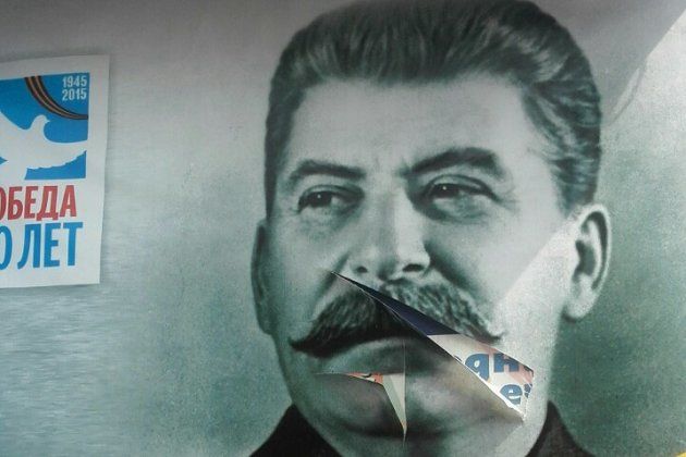Неизвестные порезали портрет советского лидера Иосифа Сталина, размещенный на плакате в Чите в преддверии Дня Победы.