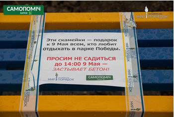 Дождь нарушил планы активистов - предполагалось, что все работы будут сделаны за один день, но закончить работы полностью не удалось. 8 мая в Парке Победы было установлено 10 скамеек и несколько урн — треть от запланированного. Остальные скамейки и урны будут установлены, как только позволит погода.