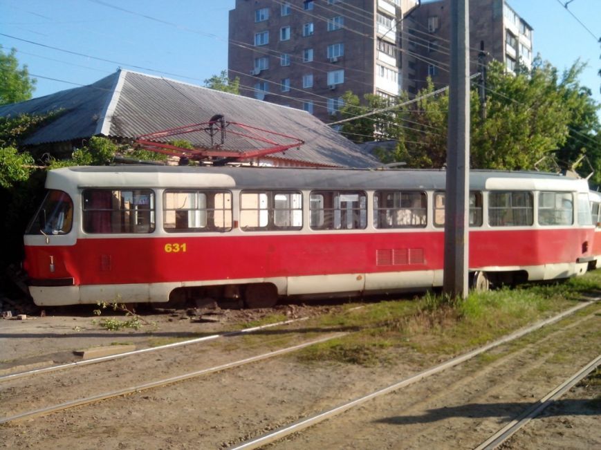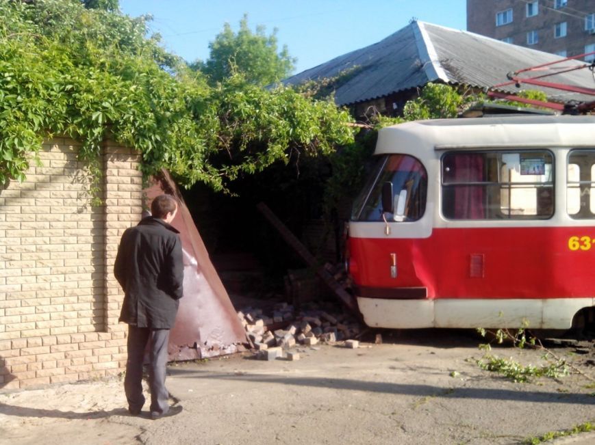 Вагон влетел в забор жилого дома, который находился в паре метров от трамвайных путей, сообщает 057.