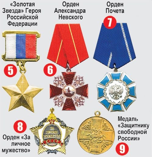 Министр также является Героем России, имеет отличительный знак к почетной грамоте от правительства РФ, отмечен "За заслуги перед Отечеством ІІ степени" - сразу звездой и орденом. Грудь Шойгу украшают еще три ордена – "Почета", "Александра Невского" и "Андрея Первозванного", медаль "Защитнику свободной России" и еще советский орден "За личное мужество".