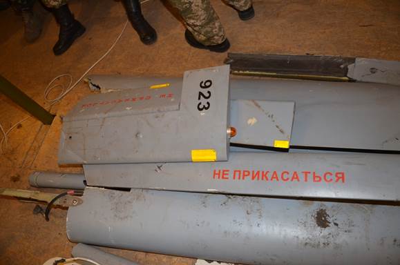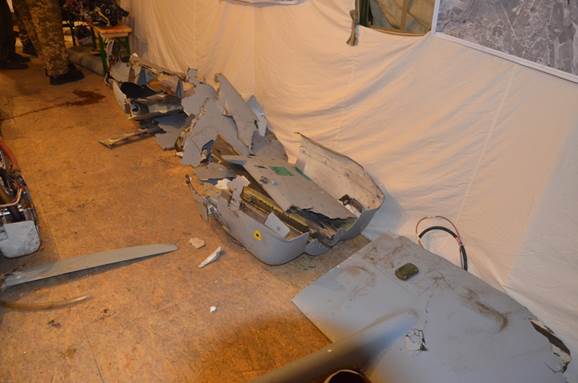 Сбитый беспилотный летательный аппарат - марки «Форпост» производства «Уральского завода гражданской авиации» Российской Федерации. Серийный номер изделия военного назначения 923, 2013 года сборки. Длина аппарата около 5 метров.