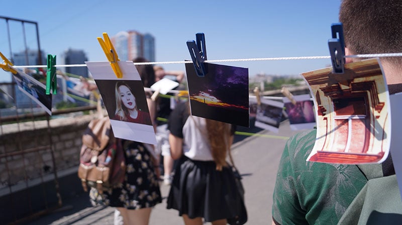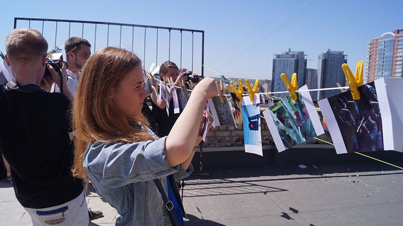 "Сушка" - фотовыставка, где любой человек может повесить на веревку свой снимок, а взамен забрать себе чужой - впервые с 2012 года прошла в Харькове на высоте птичьего полета.