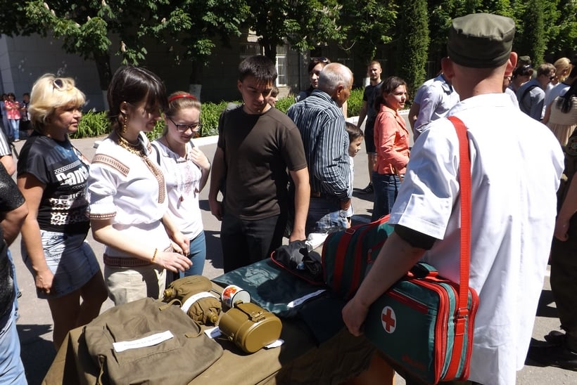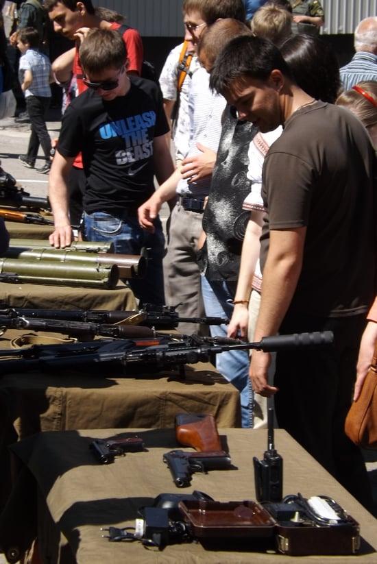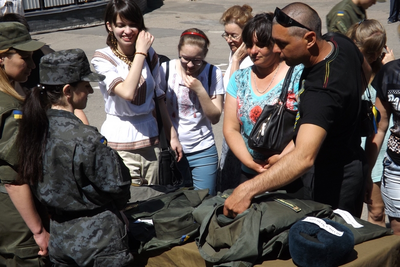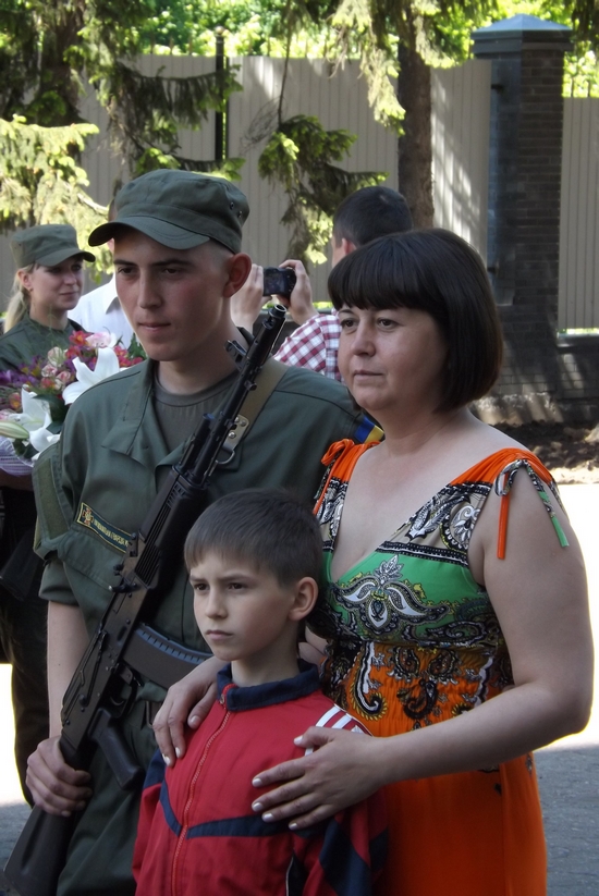 Командование части организовало для родителей солдат экспозицию видов материально-технического обеспечения. Конечно, матери и жоны молодых бойцов в первую очередь рассматривали и расспрашивали про обмундирование, задавали вопросы о качестве и коллорийности пищи в частях Нацгвардии Украины. Отцы же интересовались особенностями вооружения и специальных средств.