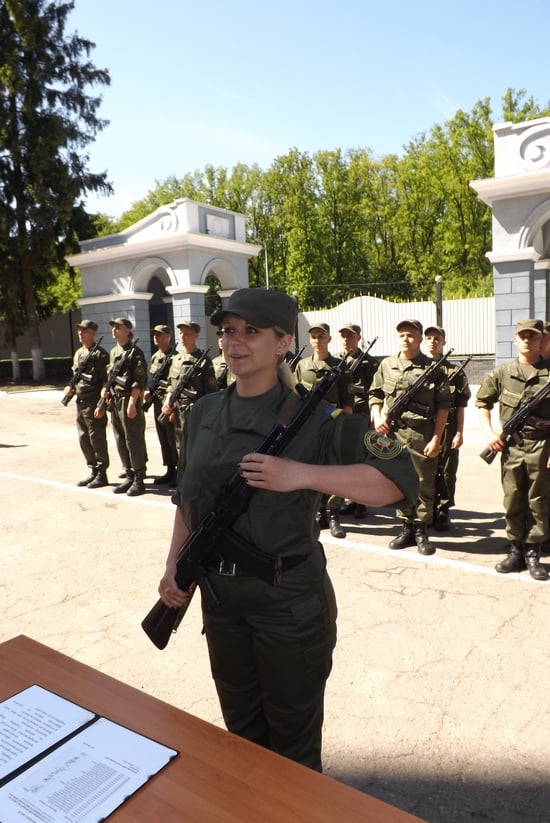 Вместе с ребятами торжественно присягала в верности украинскому народу представительница прекрасного пола – Елена Шаптала. Девушка 4 года училась в Национальной академии Национальной гвардии Украины на гуманитарном факультете и в этом году успешно его окончила.